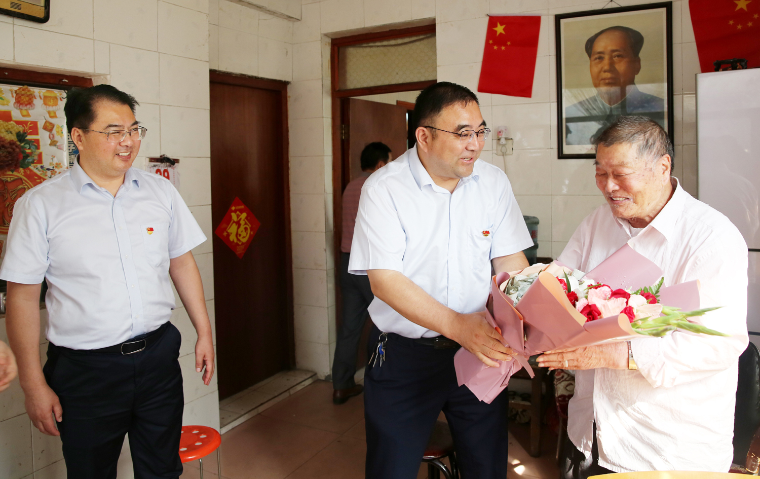 國慶前夕,9月29日上午,集團(tuán)公司董事長、黨委書記楊龍,總經(jīng)理胡建明、黨委副書記戴鴻鳴、紀(jì)委書記汪群等領(lǐng)導(dǎo)分組走訪慰問部分建國前參加工作的老黨員、老干部,為他們送去慰問金和鮮花,同慶新中國七十周歲華誕。