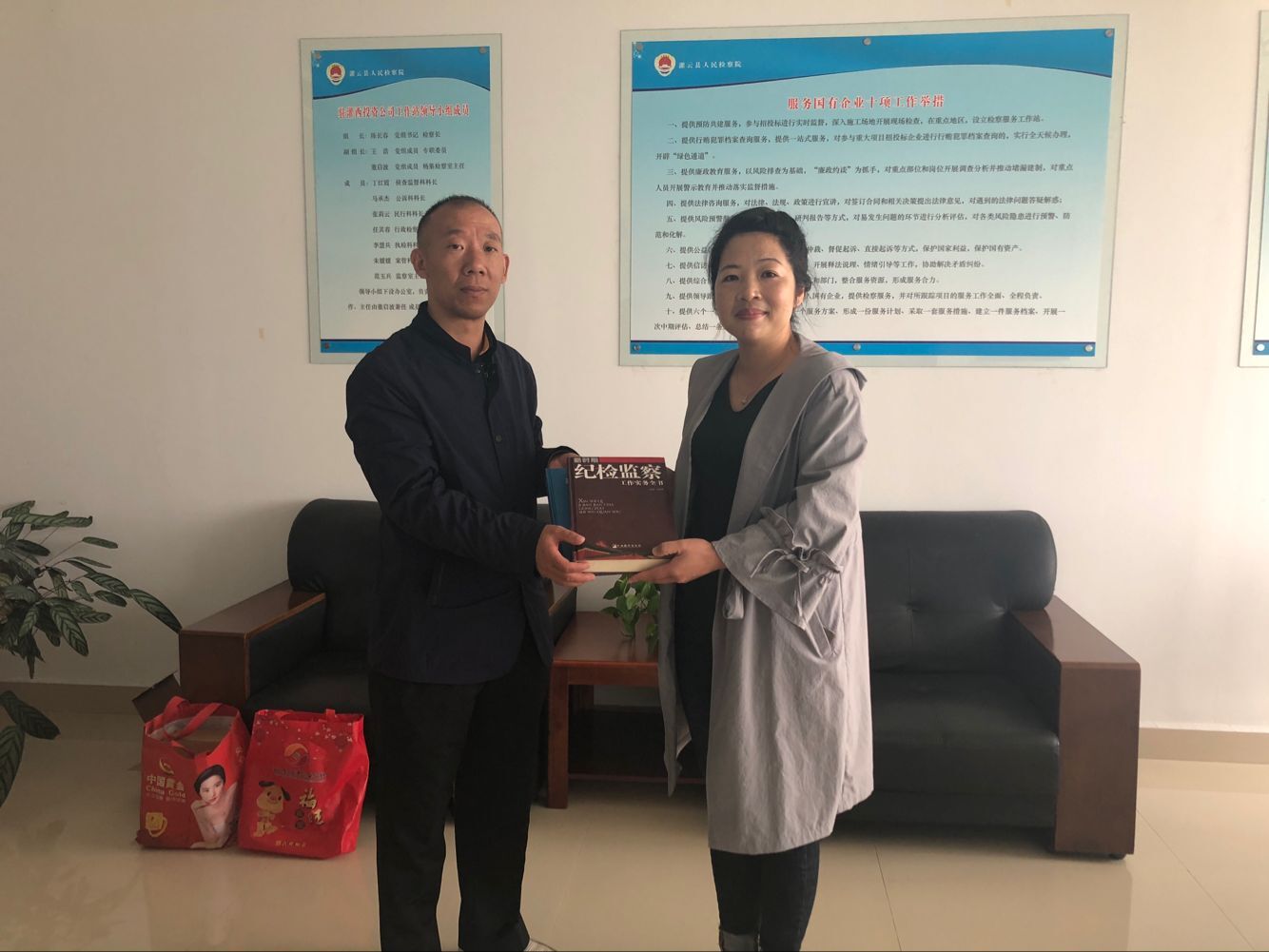 10月17日,灌云縣檢察院監(jiān)察室主任范玉兵到灌西投資公司紀(jì)委調(diào)研工作,進(jìn)一步加強(qiáng)檢察院與企業(yè)溝通和了解,促進(jìn)“檢企共建”活動深入開展。