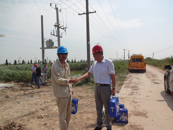 近日,中午天氣持續(xù)高溫炎熱,公司經(jīng)理孫政權(quán)、工會(huì)主席王志軍、副經(jīng)理袁慶國(guó)等領(lǐng)導(dǎo),于91日上午,來(lái)到灌西供電所施工現(xiàn)場(chǎng)看望慰問(wèn)一線職工,并給他們送去了食品、飲料等慰問(wèn)品。