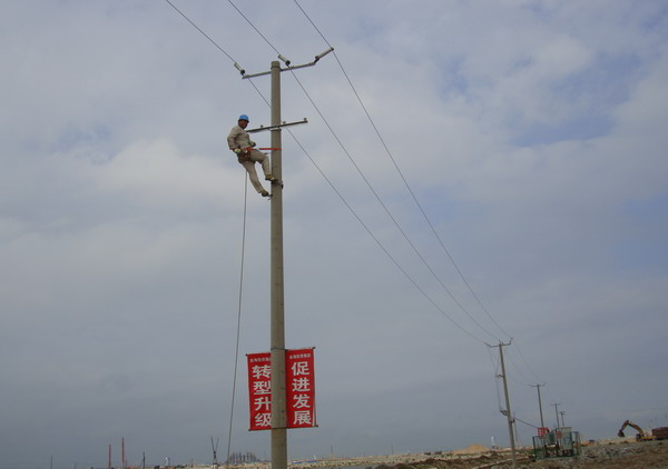 8月27日,該所接到連云新城建設(shè)指揮部通知,要求在施工道路沿線全部架設(shè)臨時路燈,并在8月31日完成,以加快新城工程建設(shè)進度。這需要在短短三天內(nèi)安裝60盞路燈、架設(shè)3000米照明線路與部分電桿。該所領(lǐng)導(dǎo)班子既感受到新城建設(shè)指揮部領(lǐng)導(dǎo)的信任,又深感任務(wù)的艱巨。面對人員少、工程急、施工地形復(fù)雜等困難,該所安排人員抓緊制定方案,準(zhǔn)備材料,并積極組織人力,除留下變電所和電費收繳值班人員外,其余人員全體出動。一場與時間賽跑、與困難抗?fàn)幍臅?zhàn)在連云新城建設(shè)工地上拉開了序幕。