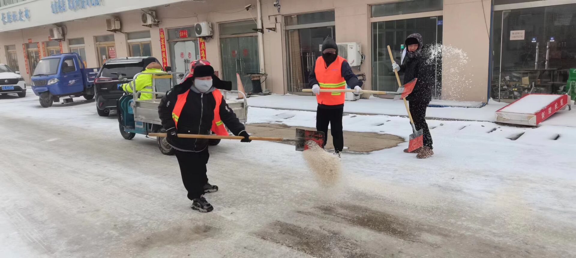 “紅色暖流”為守護“民生溫度”保駕護航。面對今年新春以來首個惡劣天氣的“大考”,公司廣大黨員以雪為令,聞雪而動,充分發(fā)揮黨組織戰(zhàn)斗堡壘作用和黨員的先鋒模范作用,帶領廣大員工浴“雪”奮戰(zhàn),組成應急黨員突擊隊,應對極端天氣造成的不利影響,24小時不間斷值守。對日曬制鹽區(qū)域、中二圩街道等主次干道12000余米進行清雪除冰。同時,建立應急隊伍工作群,旨在快速解決職工群眾關注的熱點和難點問題,不斷織密民生保障網(wǎng),用微服務暢通大民生,以小實事彰顯大擔當。(西宣)