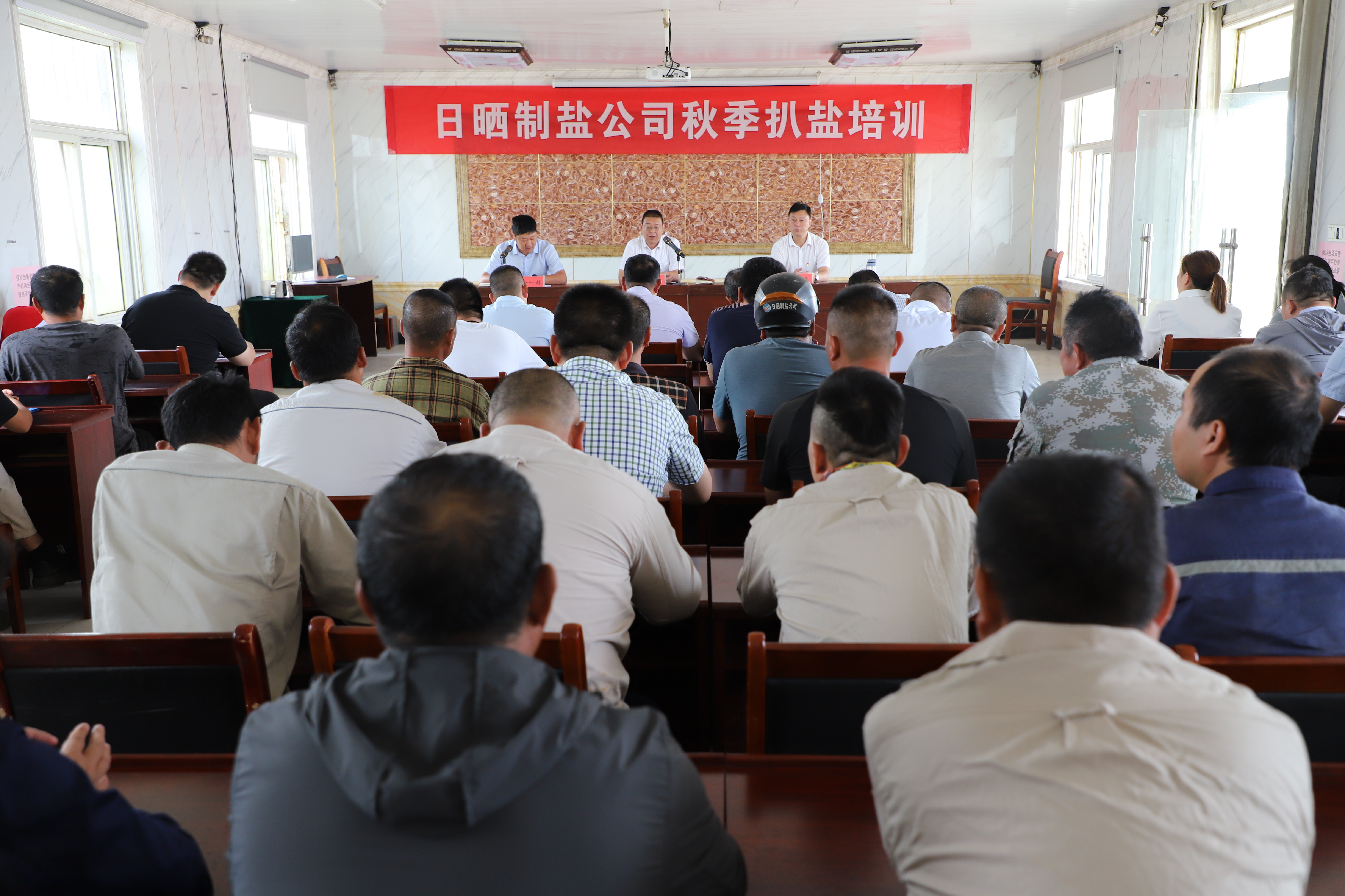 為貫徹落實(shí)“安全第一,預(yù)防為主,綜合治理"的安全生產(chǎn)方針,提高員工安全意識和安全操作技能,9月15日上午,公司開展扒鹽培訓(xùn),公司黨委書記、董事長孫政權(quán)、總經(jīng)理吳衛(wèi)平出席,常務(wù)副總經(jīng)理徐一林主持會議,日曬制鹽管理人員、后勤人員及公司帶班人員參加培訓(xùn)。