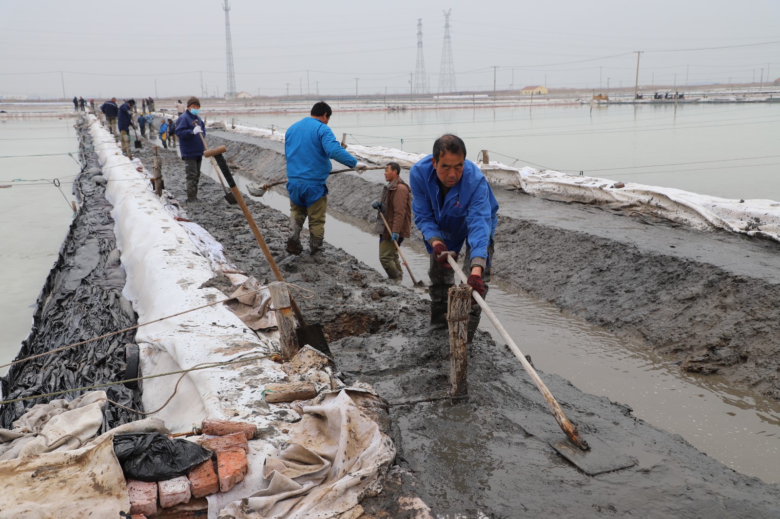在新河制鹽分公司鹽田地頭的冬準(zhǔn)會戰(zhàn)現(xiàn)場,人頭攢動,工人們正動作嫻熟的進(jìn)行澆水、翻泥、踩實(shí)、做埝、整平……,鹽工們?nèi)幭冗M(jìn)位,手腳不停的揮鍬挖泥,呈現(xiàn)出你追我趕、比肩發(fā)力的勞動場景。一條條溝道改造、格堰修整等亮化灘場文明建設(shè)煥然一新,一幅幅“人勤春早”的美麗畫卷徐徐展開。