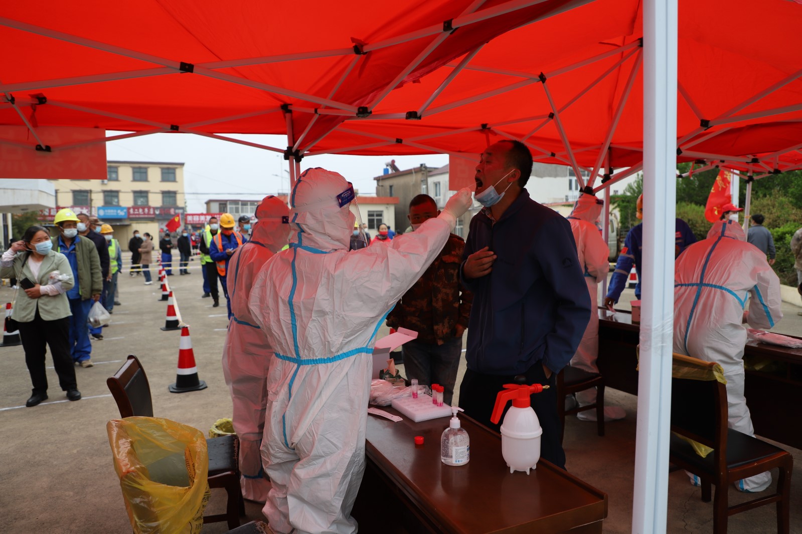 為了配合做好這一輪的全民核酸檢測工作,從核酸檢測前期的場地準備到居民隊伍的秩序維持,從協(xié)助醫(yī)護人員做好消毒、信息錄入到現(xiàn)場管理,灌西投資公司廣大志愿者奮勇上前,全過程參與其中。由于之前天氣有雨,早在凌晨3點多鐘,公司志愿者們就來到現(xiàn)場部署核酸檢測場地,及時做好設(shè)置隔離區(qū),劃出一米線等工作,確保了早上5點半點準時開始檢測。