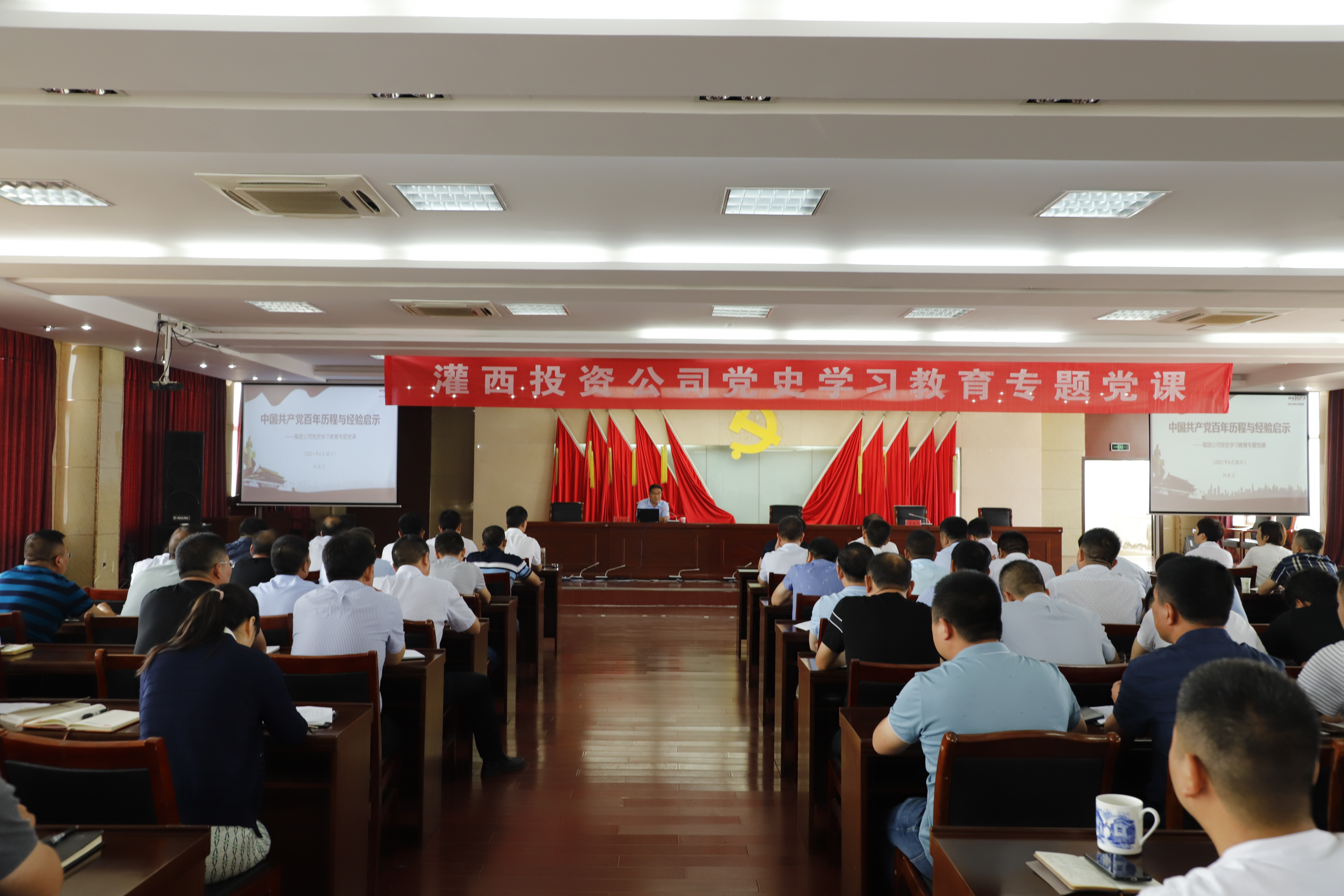 按照集團(tuán)公司統(tǒng)一安排部署,推進(jìn)黨史學(xué)習(xí)教育走深走實(shí),6月30日上午,灌西投資公司舉辦黨史學(xué)習(xí)教育專題黨課學(xué)習(xí)會(huì)。集團(tuán)工會(huì)主席劉承志以“中國共產(chǎn)黨百年歷程與經(jīng)驗(yàn)啟示”為題專題授課。投資公司領(lǐng)導(dǎo)班子成員、各單位黨政負(fù)責(zé)人、機(jī)關(guān)全體黨員參加學(xué)習(xí)。灌西投資公司黨委書記、董事長、總經(jīng)理李國文主持會(huì)議。