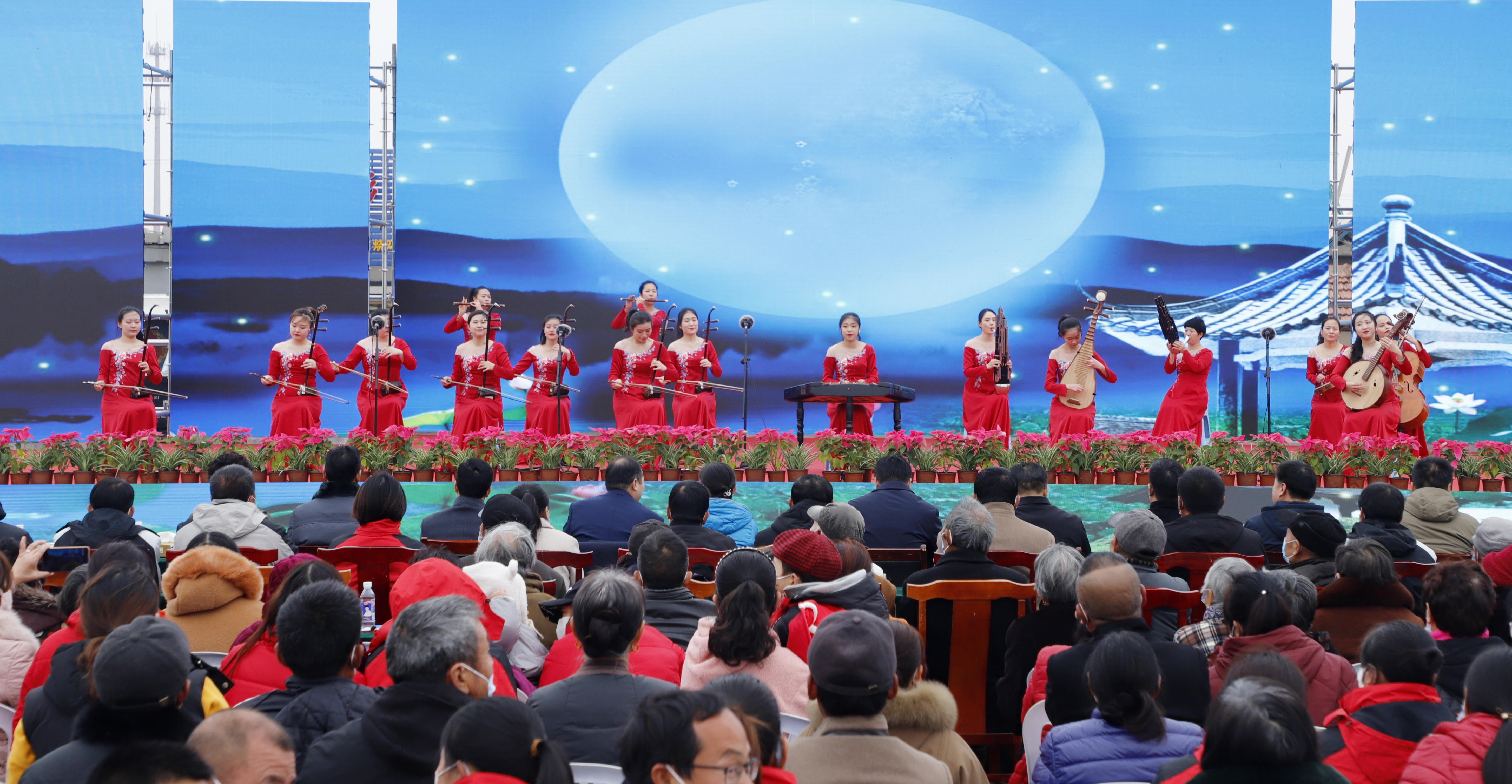 演出在精彩的合奏《水鄉(xiāng)情韻花好月圓》中拉開序幕,現(xiàn)場洋溢著歡樂的氣氛。健身操《向快樂出發(fā)》節(jié)奏歡快,動作利落灑脫,盡情釋放青春活力,獨舞《浣》旋律優(yōu)美,衣袖舞動,舞出溫婉柔美之態(tài)。現(xiàn)代與古典、活力與韻味的巧妙結合,為現(xiàn)場觀眾帶來了一場視覺上的盛宴。男聲獨唱《我是真英雄》、二胡獨奏《太極琴俠》、舞蹈《我和我的祖國》,以及民樂合奏《樂見西游》,悅耳的人聲與悠遠的琴聲合鳴共振,營造出悠揚美妙的音樂劇場。相聲《歡聲笑語》和淮海戲《借靴》語言幽默風趣,劇情跌宕起伏,演員與臺下觀眾時不時的互動更是掀起了一波又一波的高潮。最終,精彩紛呈的演出在女聲獨唱《錦繡前程》中落下帷幕。