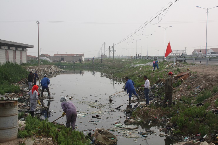 早上7點(diǎn),各單位黨員職工們就已經(jīng)集合完畢,新河、埒南兩個(gè)制鹽分公司的職工們更是早在清晨5點(diǎn)多就開始清掃責(zé)任區(qū)衛(wèi)生。在勞動(dòng)現(xiàn)場(chǎng),黨員職工們揮舞著攜帶的鐵鍬,耙子,鐮刀等工具,按照分配好的片區(qū),在整個(gè)中二圩地區(qū)展開了衛(wèi)生大治理工作。他們有的在清理排水溝渠,有的在進(jìn)行除草,有的在為居民清理下水道,整個(gè)大行動(dòng)現(xiàn)場(chǎng)一片熱熱鬧鬧的繁忙景象。機(jī)電服務(wù)公司負(fù)責(zé)的片區(qū)內(nèi),黨員職工們或是手持撬棍掀開下水道蓋板,或是拿著鐵鍬清理排水溝道;實(shí)業(yè)公司和宵洋物流公司負(fù)責(zé)片區(qū)內(nèi),黨員職工不顧池塘內(nèi)的異味,奮不顧身的撐著木筏進(jìn)行清理;已到耄耋之齡的退休老黨員劉保花奶奶,也揮舞起鐵锨,加入到清除隊(duì)伍中來(lái)……一幕幕感人的場(chǎng)景,鼓舞著黨員職工們的干勁。通過(guò)一上午的活動(dòng),中二圩的溝道疏通了,路面也更加整潔了。