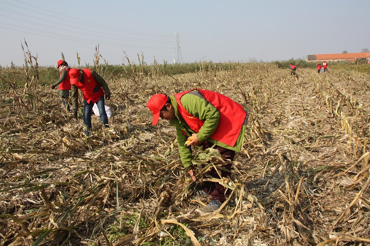 目前,位于柴門(mén)居民點(diǎn)附近的灌西實(shí)業(yè)公司農(nóng)田已進(jìn)入作物收獲期,由于所種玉米已經(jīng)完全成熟,且經(jīng)歷了一次大風(fēng)降溫天氣,所以在機(jī)械進(jìn)場(chǎng)作業(yè)前,有部分玉米已經(jīng)掉落在了地上,如不及時(shí)撿拾,將造成極大浪費(fèi)。公司團(tuán)委在得知這一消息后,立即組織近十名青年志愿者利用中午休息時(shí)間,到該公司農(nóng)田開(kāi)展撿拾散落玉米志愿服務(wù)活動(dòng)。活動(dòng)中,大家手拿編織袋,排成橫排仔細(xì)搜尋并緩慢向前推進(jìn)。由于玉米皮與秸稈顏色相近且混雜在一起很難分辨,因此大家在撿拾過(guò)程中不僅需要認(rèn)真搜尋,有時(shí)還需要彎腰翻動(dòng)秸稈,以最大限度的不遺漏任何一個(gè)散落的玉米。