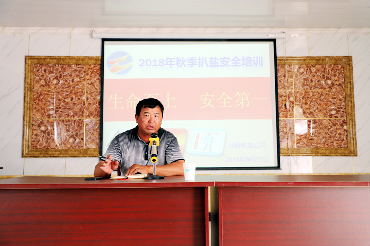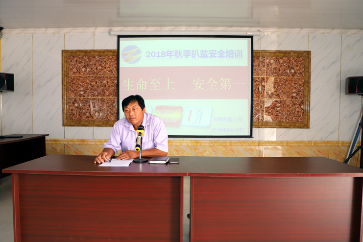 9月10日下午,日曬制鹽公司在生產(chǎn)服務(wù)公司會(huì)議室舉行秋季扒鹽安全培訓(xùn),公司安全部和來(lái)自日曬制鹽公司下屬各單位帶班干部、帶班班長(zhǎng)、電工、維修工、機(jī)械操作手等共計(jì)120余人參加此次培訓(xùn)。