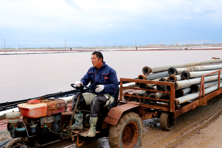 日前,在日曬制鹽的班組扒鹽現(xiàn)場,聚焦許多職工正在進(jìn)行扒鹽設(shè)備轉(zhuǎn)移工作。據(jù)了解,目前是3個班組共用一個扒鹽機(jī)組,為搶抓晴好天時,加快扒鹽進(jìn)度,從各班抽調(diào)三十余名職工到現(xiàn)場進(jìn)行扒鹽設(shè)備轉(zhuǎn)移,分工明確,有負(fù)責(zé)拆裝管道的、有負(fù)責(zé)運(yùn)送配電箱、還有負(fù)責(zé)大泵、駕駛唐三零扒鹽機(jī),大家忙的不亦樂乎。目前以扒364塊格子,扒鹽23.3萬噸,預(yù)計在11月15日前后結(jié)束秋扒戰(zhàn)役。(張明建)