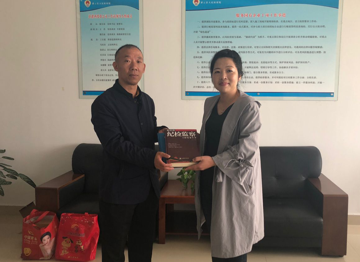 10月17日,灌云縣檢察院監(jiān)察室主任范玉兵來(lái)我公司調(diào)研工作,進(jìn)一步加強(qiáng)檢察院與企業(yè)溝通和了解,促進(jìn)“檢企共建”活動(dòng)深入開(kāi)展。