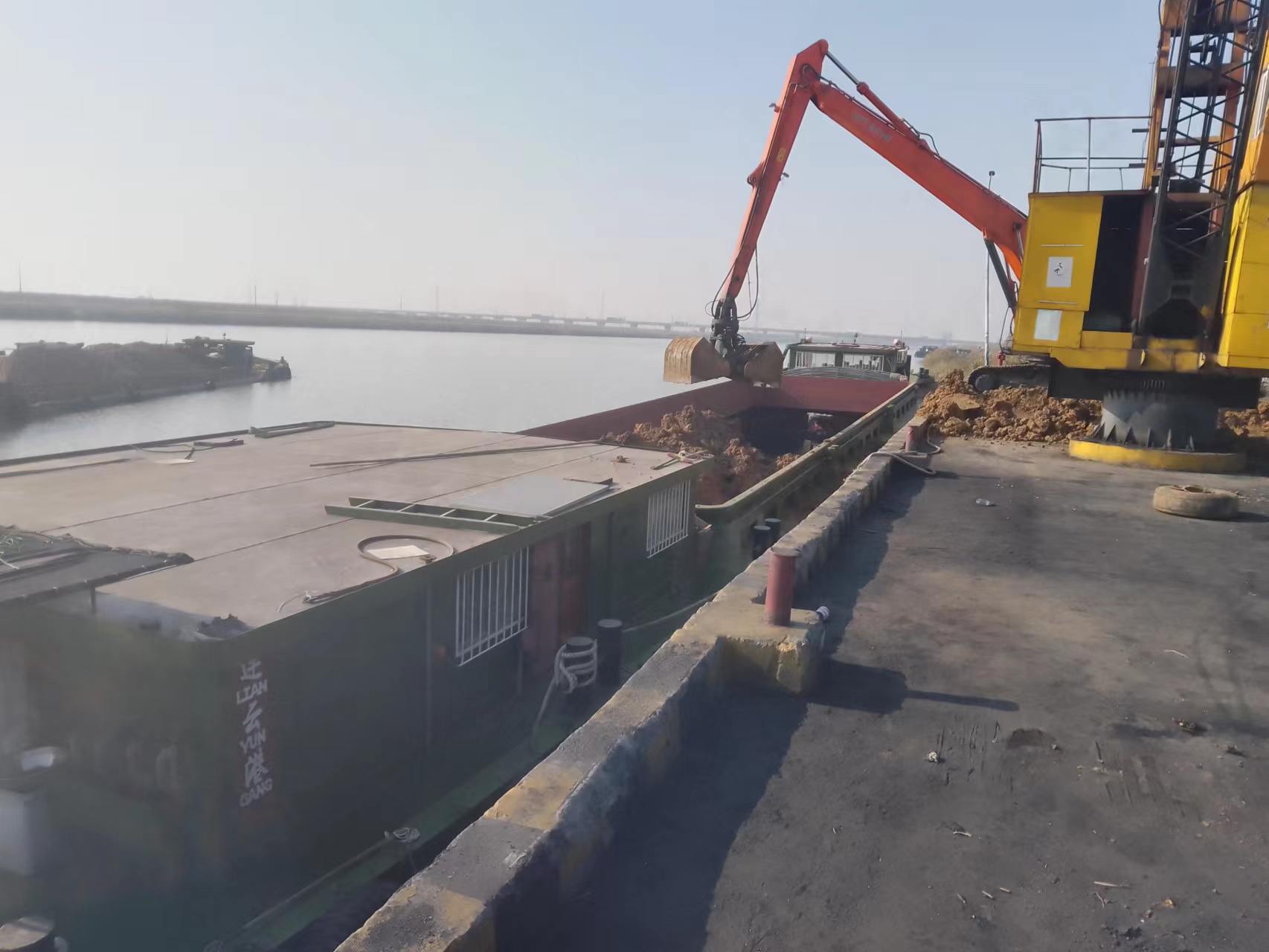 近日,宵洋物流公司碼頭十幾輛運輸車輛有序排列著,工人正在不停的操作機械、裝卸綠化土等工作,報崗船只頻繁進出,安全員在現(xiàn)場安全管理,整個過程井然有序,生產(chǎn)現(xiàn)場一派繁忙景象。