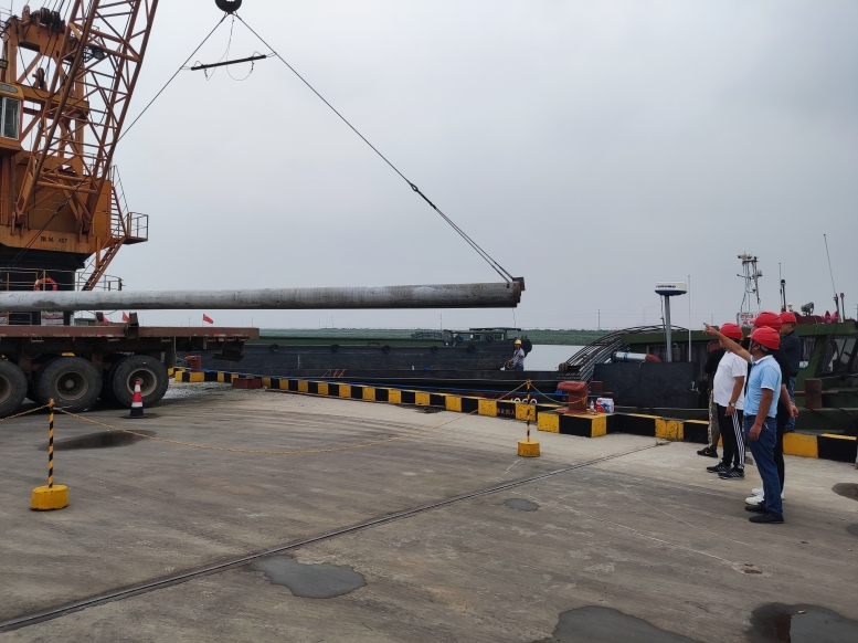 管樁的裝卸和別的貨物相比,安全風(fēng)險(xiǎn)更大,所以在裝卸管樁時(shí),宵洋管理人員要深入現(xiàn)場(chǎng),緊盯嚴(yán)管,對(duì)管樁的重要環(huán)節(jié),一邊講解注意事項(xiàng),一邊手勢(shì)指揮,塔吊師傅小心翼翼,嫻熟地拔弄著操作手把,通過(guò)塔吊搬運(yùn),五噸的管樁在半空中調(diào)試到最佳位置,最后平穩(wěn)著落,從船艙吊起的管樁,運(yùn)送到貨車(chē)上,艙內(nèi)的三名工人,齊心協(xié)力,配合得相當(dāng)默契,掛在吊機(jī)上的管樁,看似簡(jiǎn)單的一鉤一掛,不僅要調(diào)整管樁擺放角度,還要檢查鋼繩是否牢固,為了安全起見(jiàn),在船艙和管樁之間,又架起了一層防護(hù)網(wǎng),防止掛鉤工摔倒跌落,采取一系列防范措施,確保萬(wàn)無(wú)一失。經(jīng)過(guò)一天的忙碌,望著遠(yuǎn)去車(chē)輛,每當(dāng)圓滿(mǎn)完成當(dāng)天卸管樁任務(wù)后,工人們憨厚老實(shí)臉上,露出了滿(mǎn)意的微笑,這就是我們宵洋工人搬卸管樁情景的真實(shí)寫(xiě)照!(宵洋物流公司胡秀同)