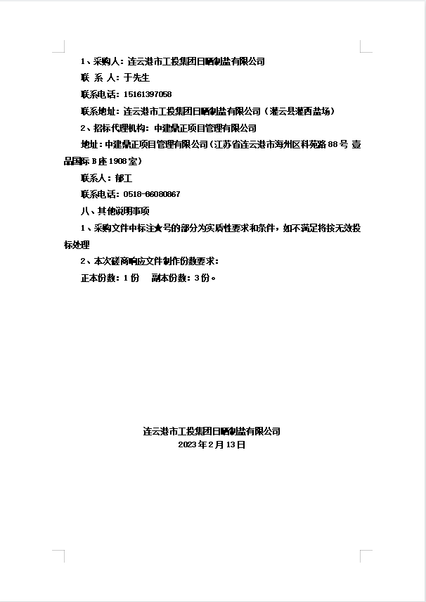 連云港市工投集團(tuán)日曬制鹽有限公司浮木、壓條招標(biāo)公告