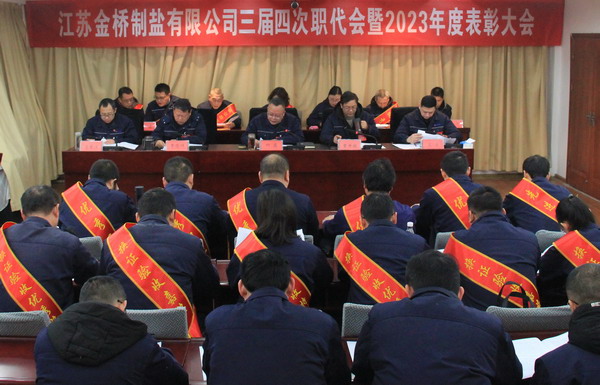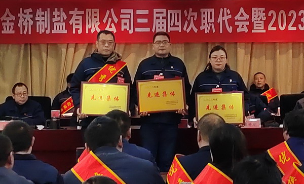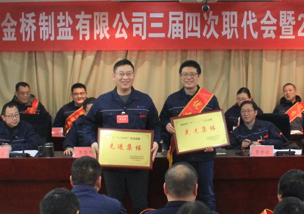 2月2日上午,金橋制鹽公司召開三屆四次職代會暨2023年度表彰大會。公司黨委書記、董事長、總經(jīng)理田磊作《工作報(bào)告》,黨委副書記、紀(jì)委書記、工會主席曹開明主持大會,公司領(lǐng)導(dǎo)班子成員及職工代表出席會議。