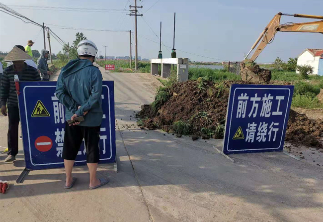 此路段是青口鹽場場內(nèi)主要道路,由于持續(xù)高溫,橋面拱起、斷裂。到達現(xiàn)場后,公司立即組織人員勘察橋梁情況,封閉了現(xiàn)場交通,及時在公司以及社區(qū)QQ群、微信群發(fā)送繞道通行信息,并設(shè)置警示牌,確保夜間交通安全。