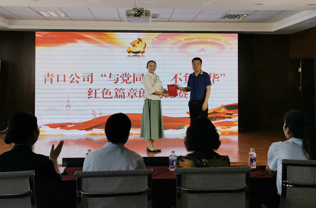 為了慶祝建黨99周年,引導(dǎo)和激勵(lì)廣大黨員干部圍繞 “三年攀高”行動(dòng)計(jì)劃,為弘揚(yáng)“新青口精神”、開啟青口發(fā)展新征程貢獻(xiàn)力量。6月23日下午,青口公司黨委隆重舉行“與黨同行、不負(fù)韶華”紅色篇章朗誦比賽。公司領(lǐng)導(dǎo)班子、機(jī)關(guān)全體管理人員及各單位黨政工負(fù)責(zé)人參加活動(dòng)。
