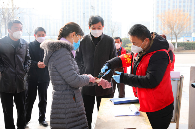 汪書記一行在公司疫情防控檢查站前,詳細(xì)了解了公司疫情防控情況,青農(nóng)一路作為主要的進(jìn)場(chǎng)通道,四個(gè)單位的黨員干部輪流值班,并設(shè)置臨時(shí)看護(hù)房,保證二十四小時(shí)值班。在鹽場(chǎng)家園小區(qū)僅保留一個(gè)出口,外來(lái)家用轎車一律禁止入內(nèi),每戶發(fā)一張通行證,嚴(yán)格管控人員流動(dòng)。汪書記得知物業(yè)公司還沒有完成,鼓勵(lì)大家非常時(shí)期用非常辦法,將工作做細(xì)做實(shí),想居民所想,嚴(yán)格做好防控工作。進(jìn)入小區(qū)前,汪書記也與居民一樣配合登記和測(cè)量體溫,當(dāng)看物業(yè)為了保證每天定時(shí)對(duì)單元和電梯間等重要場(chǎng)所的消毒存有大量消毒液,強(qiáng)調(diào)物業(yè)公司要增強(qiáng)消毒物品存放安全意識(shí),合理使用,盡最大努力保一方平安。 (顧 益)