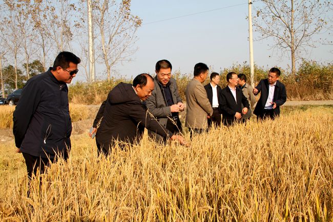 11月1日下午,青口投資公司大新農(nóng)場一分場的稻田一片金黃,沉甸甸的稻穗彎腰相迎,開鐮的第一天集團(tuán)公司總經(jīng)理胡建明就來到這里調(diào)研指導(dǎo)工作。在家領(lǐng)導(dǎo)班子成員全程陪同。
