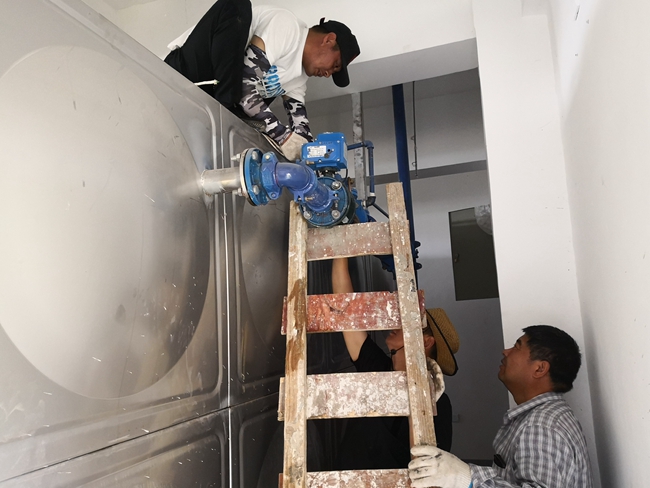 2019年6月3日早晨,自來(lái)水班組巡查人員發(fā)現(xiàn)小區(qū)生活泵房水箱的溢水口有大量清水流出,立即組織人員前往搶修。