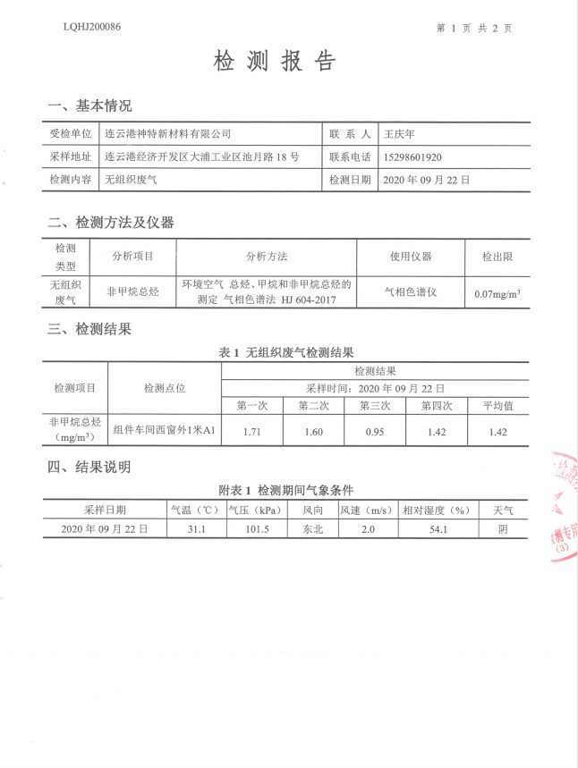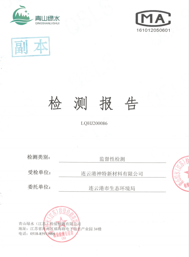 神特公司檢測報(bào)告公示