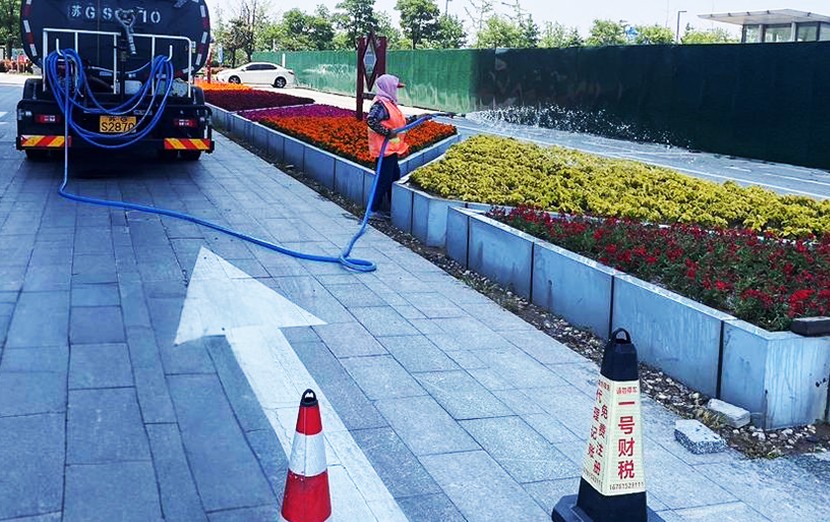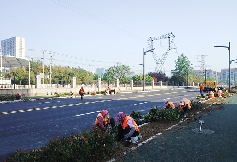 配合綠化分公司,對轄區(qū)新栽苗木進行澆水,有效保障苗木生長;增加節(jié)日期間清掃保潔力度,通過增加人工保潔作業(yè)頻次,采用人機配合的高效作業(yè)模式等方式,最大限度地縮短污染物的停留時間,提高轄區(qū)道路清潔度;開發(fā)區(qū)轄區(qū)火車東站、花果山大道、東方大道、黃海大道、242省道等重點路段,隨處可見身穿橙色工作服,手持簸箕、掃帚的環(huán)衛(wèi)工人們,穿梭在熱鬧的街道邊,用辛勤勞動,為城市留下一片干凈整潔。