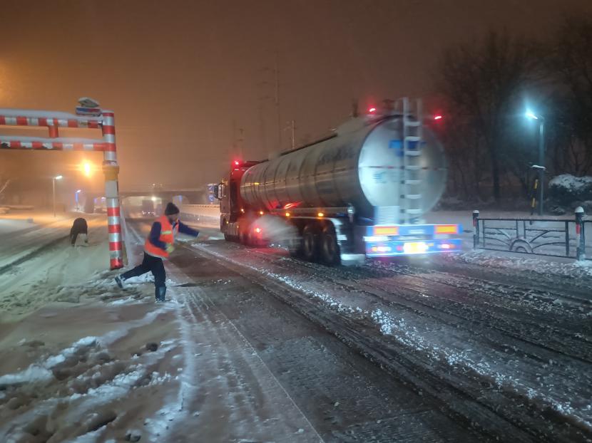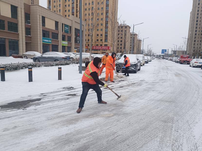 5日凌晨4點(diǎn),該公司負(fù)責(zé)人于廣華已經(jīng)在除雪的第一線,積極安排工作調(diào)度,對(duì)新光路、平山路、黃海大道等重要路段突擊清掃,大家頂著風(fēng)雪,齊心協(xié)力,分工明確,高效配合,全力清除路面上的積雪和暗冰,及時(shí)為車輛和行人清理出一條條“安全路”。