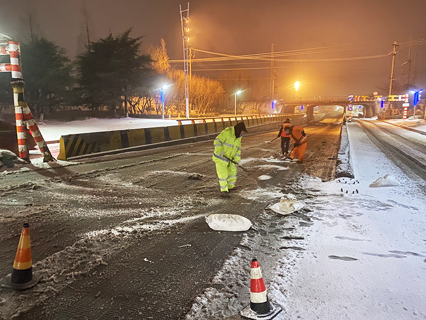? ? 此次掃雪除冰行動,采用人機結(jié)合方式,調(diào)派鏟雪車、裝載機等機械設備,對東方大道、黃海大道、花果山大道、242省道等主要干道人行便道、交叉路口,新海連大廈、火車站東站等重要地段的路面冰雪進行突擊清理;對各條干道的橋面及馬山立交橋、新光路下穿立交等坡度路面鋪灑氯化鈣除雪劑融化冰雪。