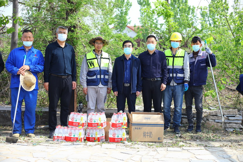 422日,投資公司領(lǐng)導(dǎo)王德志、楊善革、劉軍一行來到翔立分公司“蟠桃生態(tài)園”勞動作業(yè)現(xiàn)場開展慰問活動,為堅守崗位的一線員工道辛苦、說感謝、送關(guān)懷,并送上清涼慰問品。
