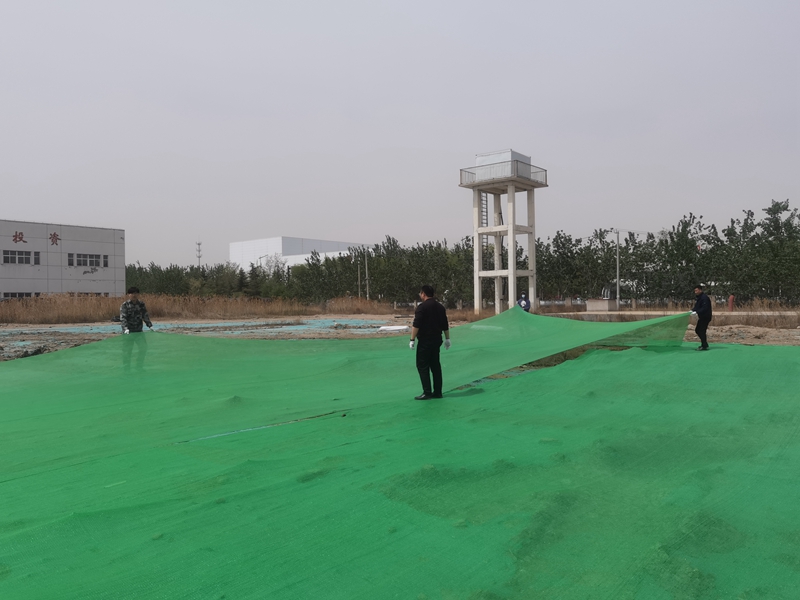 翔立分公司黨支部攜手海州灣公司黨支部對公司的車站小灘進行環(huán)境整治,為裸露在外的土地進行防塵網(wǎng)鋪設(shè)。