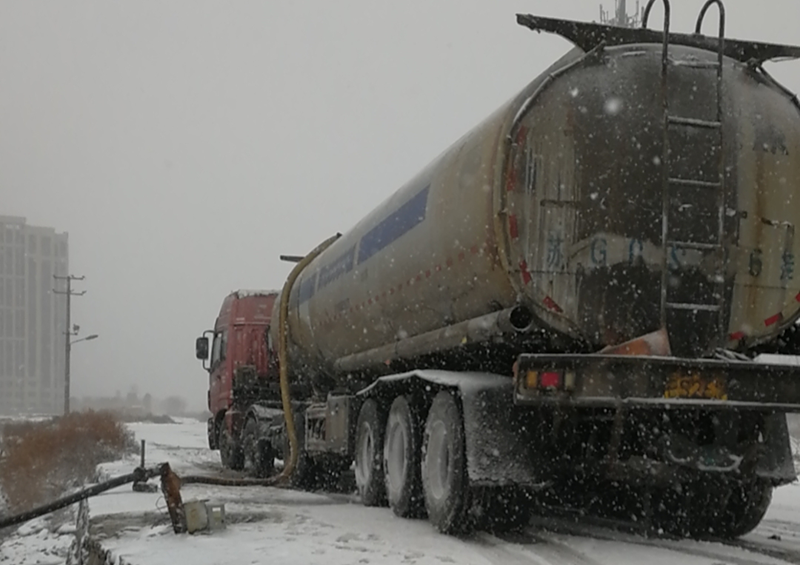 從不因天氣影響而中斷的鈣液銷售工作,風(fēng)雪中仍在如火如荼的進(jìn)行著。負(fù)責(zé)鈣液開票發(fā)放人員仔細(xì)的檢查并認(rèn)真注視液位流量計(jì),嚴(yán)謹(jǐn)記錄,嚴(yán)格遵守“一車一票制度”,滿載鈣液的槽罐車在風(fēng)雪中緩緩前行,乘載著“瑞雪兆豐年”的希望!