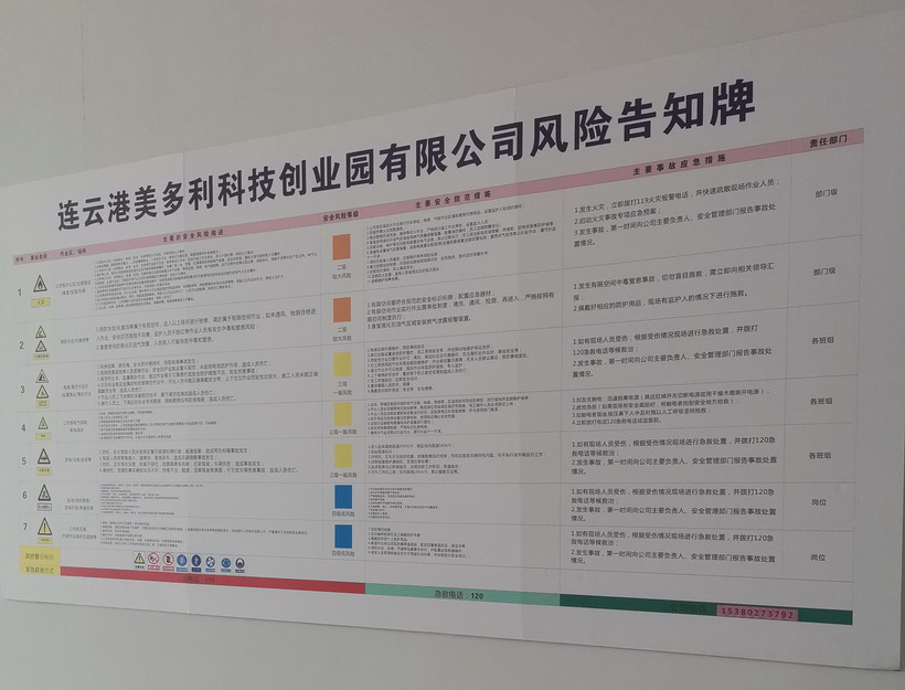 為進(jìn)一步提升美多利公司安全管理水平,切實(shí)推行風(fēng)險(xiǎn)分級(jí)管控與隱患排查治理雙重預(yù)防機(jī)制試點(diǎn)工作。近日來,美多利公司組織全體員工開展雙重預(yù)防機(jī)制教育培訓(xùn)。另外,對(duì)美多利公司消防泵房、特種設(shè)備等重點(diǎn)區(qū)域進(jìn)行風(fēng)險(xiǎn)分級(jí)管控點(diǎn)檢,并對(duì)各個(gè)區(qū)域張貼崗位風(fēng)險(xiǎn)分級(jí)管控告知卡。