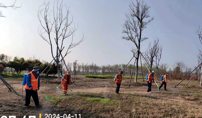 注重管理有實效,為高質(zhì)高效對園區(qū)草坪及綠地內(nèi)的枯枝、落葉、雜物等進(jìn)行集中清理。該班組放棄公休假,公園管理人員帶領(lǐng)工作人員奮戰(zhàn)在一線,整理樹圍6000棵進(jìn)行,支撐調(diào)校加固3000棵,3月份以來清理各類垃雜物100余車,大樹施有機肥6余噸。