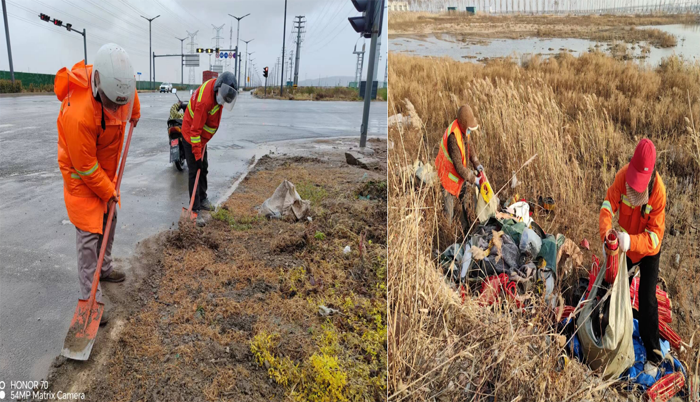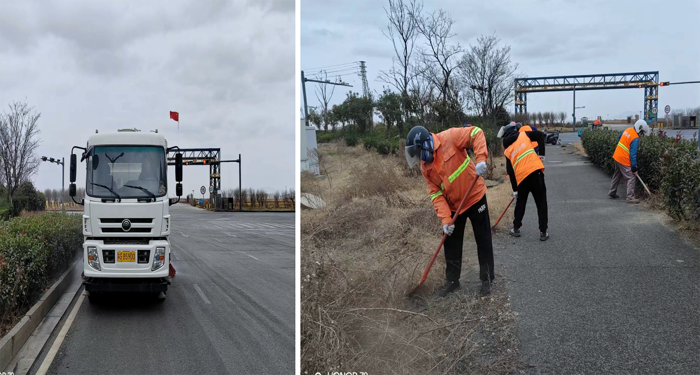 ? ? ? ?突擊處理“一馬當(dāng)先”。該分公司園區(qū)兩個(gè)班組雙休期間,及時(shí)服從徐圩城建活動(dòng)保障路線整改要求,強(qiáng)化蘇海路路面兩側(cè)施工圍檔,石化三路中風(fēng)帶護(hù)欄清洗力度。班組人員兩人一對,三人一組,無懼徐圩海風(fēng)吹透身體,揮動(dòng)手中拖把清洗圍檔,護(hù)欄長達(dá)1000多米長,清除車輛拋灑積土20余處,用辛勤勞作汗水踐行勞動(dòng)本色。